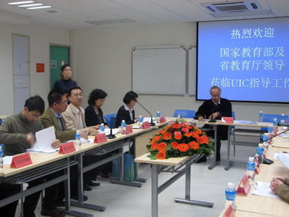 Ms. Zhang and Mr. Huang Xingsheng, Director of Legislative Affair Office, Department of Policy and Law, Ministry of Education, accompanied with Mr. Wen Chuandao, Deputy Inspector of Department of Education, Guangdong and Ms. Zeng Wanwen, Director of Policy and Law Office, Department of Education, Guangdong, inspected UIC and attended a panel meeting with UIC representatives Prof. Kwok Siu Tong, Executive Vice-President, Prof. Profulla C Sarker, Associate Dean of Division of Humanities and Social Sciences, Dr. Li Jiayong, Academic Registrar, Mr. Huang Kuangzhong, Director of Student Affairs Office, Dr. Ricky Hou, Deputy Academic Registrar and Dr. Guo Haipeng, Director of Whole Person Education Office.