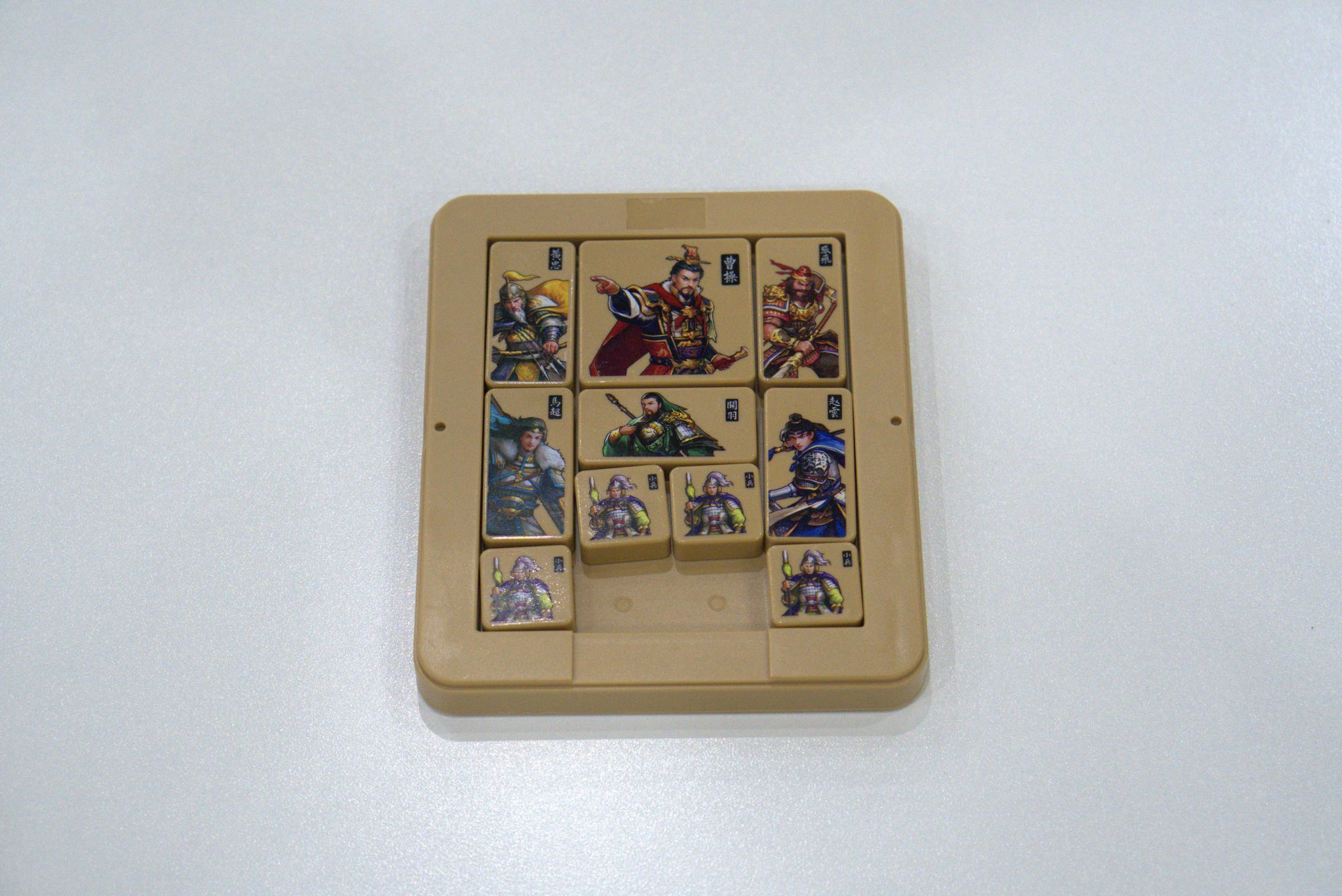 通过移动各个棋子,帮助曹操从初始位置移到棋盘最下方中部,从出口逃走。不允许跨越棋子,还要设法用最少的步数把曹操移到出口。曹操逃出华容道的最大障碍是关羽,关羽立马华容道,一夫当关,万夫莫开。关羽与曹操当然是解开这一游戏的关键。四个刘备军兵是最灵活的,也最容易对付,如何发挥他们的作用也要充分考虑周全。“华容道”有一个带二十个小方格的棋盘,代表华容道。