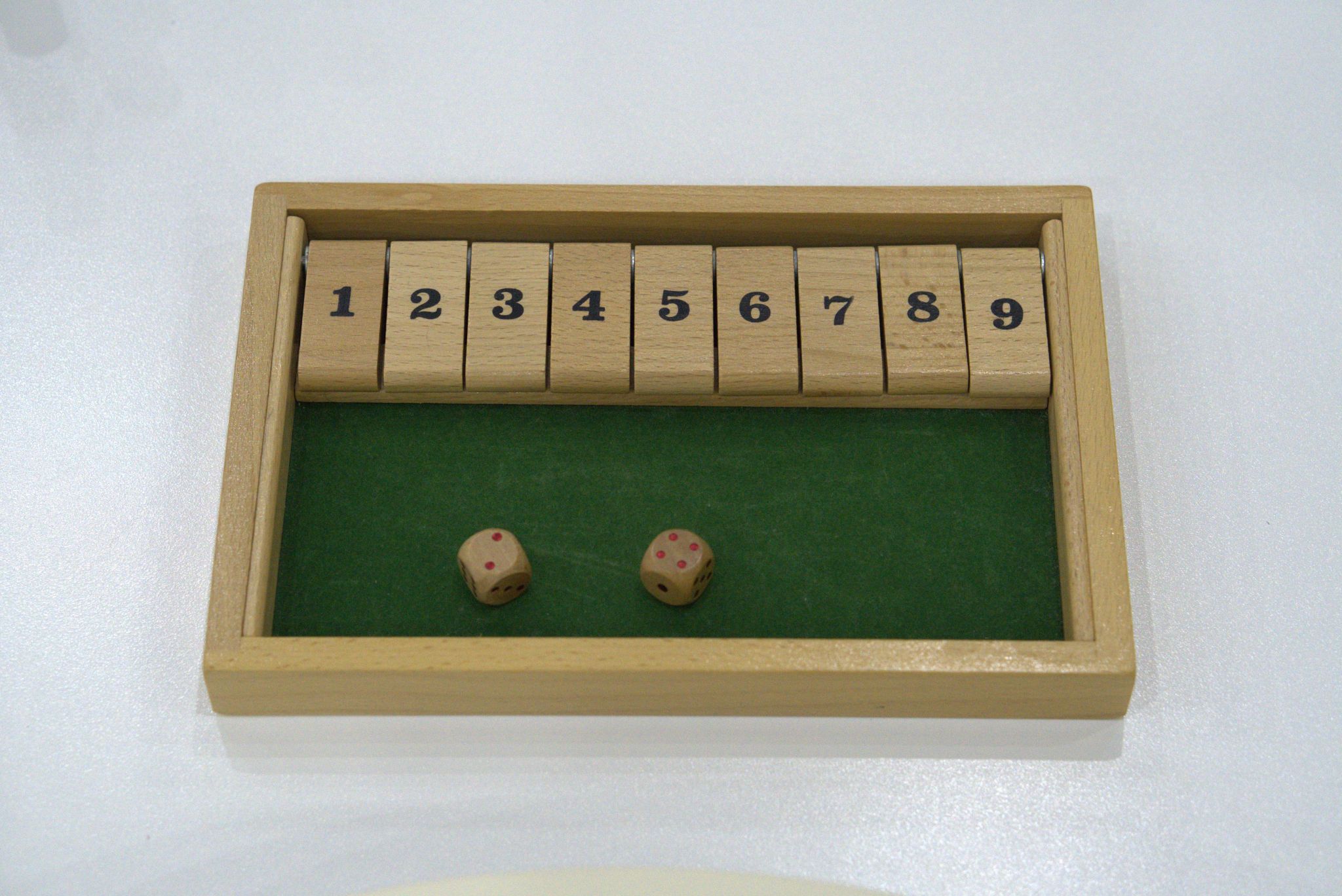 智慧翻板由9块依序排列、可以翻动的数字木牌(1~9)和2个骰子构成。典型的对弈规则是,一方先掷两骰子,求出得数,然后选翻木牌,所翻木牌的数字计算(加减乘除不限)结果必须等于骰子的得数(如,骰子34;可以选翻数字板7,也可以选翻3+4,或2+5,或9-2,或1+2+4,或12+5,或7÷1等),每个数字板限用一次,另一方则需按此规则接续下去,直至一方无牌可选、不能再续之时,即为失败。为了获胜,学生不仅需要熟练准确的计算,更需要灵活地选择恰当的策略,即在有和的组合,加的能,少环对好件。其中,数字的“计算”,检验和强化着学生对数学知识的掌握水平,而策略的“算大地考验和炼着他们年思维的水准以及计算的能力和水平因此,“智慧翻板”之名能准确地反映本款器具的精髓一一益智,故有“小翻板,大智慧”之说。