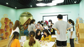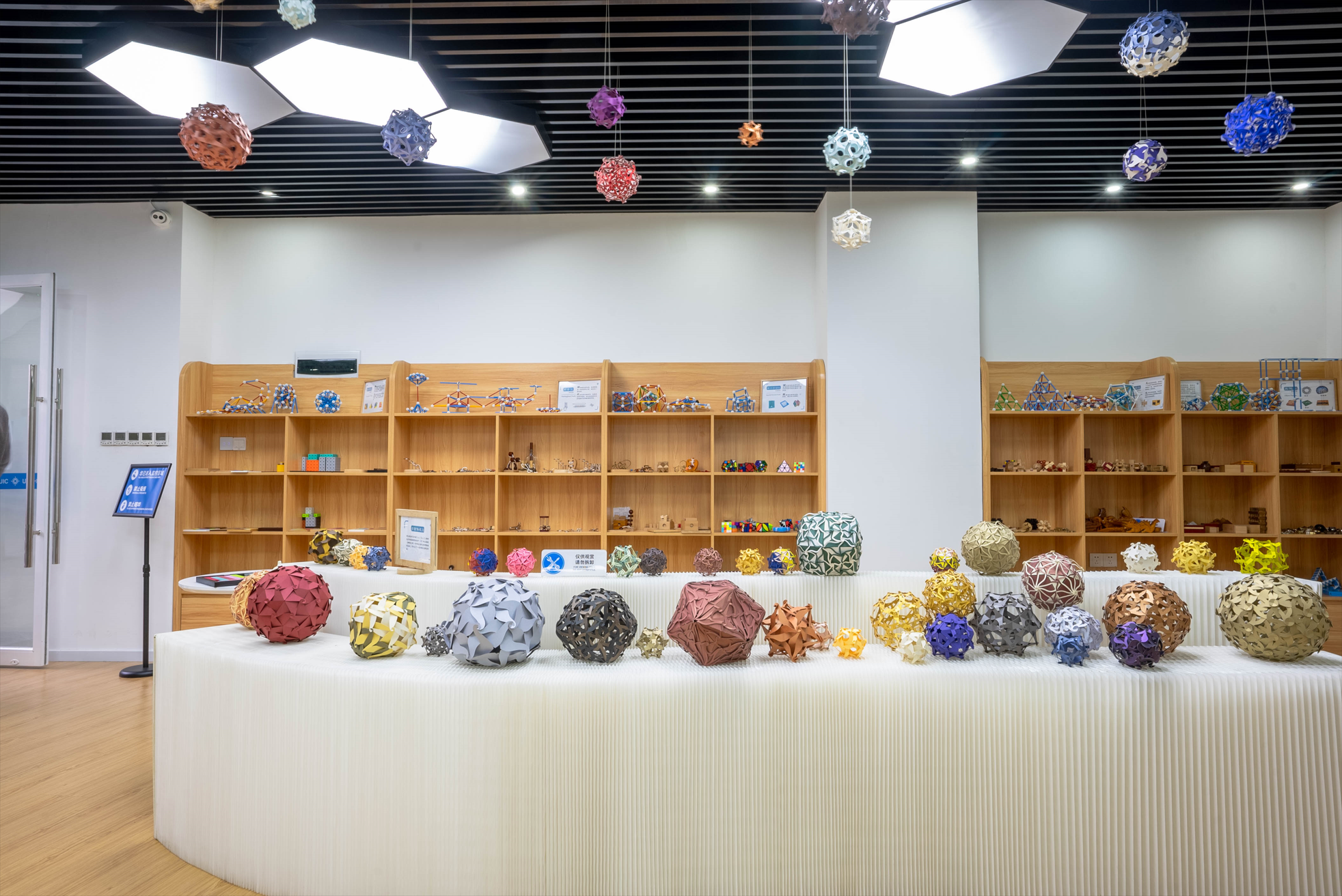 益智教玩具区摆放了几百件各式各样的数学益智玩具和数学科普书刊,包含了经典的华容道、九连环、七巧板等玩具,在这里既可以体会到数学的乐趣,也能在动手动脑的过程中提升专注力和培养思考的能力。